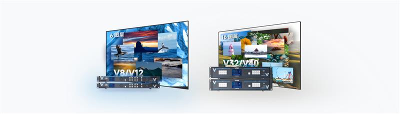 V12 có khả năng nhận tín hiệu video mạnh mẽ, hỗ trợ đầu vào video 4Kx2K@60Hz tối đa và có thể hỗ trợ tối đa 5 đầu vào tín hiệu video. Nó hỗ trợ tối đa 6 tài nguyên lớp và hỗ trợ thu phóng hình ảnh đầu ra vô cấp, hiệu chỉnh độ sáng và màu sắc từng điểm, v.v., có thể cung cấp khả năng hiển thị hình ảnh tuyệt vời.