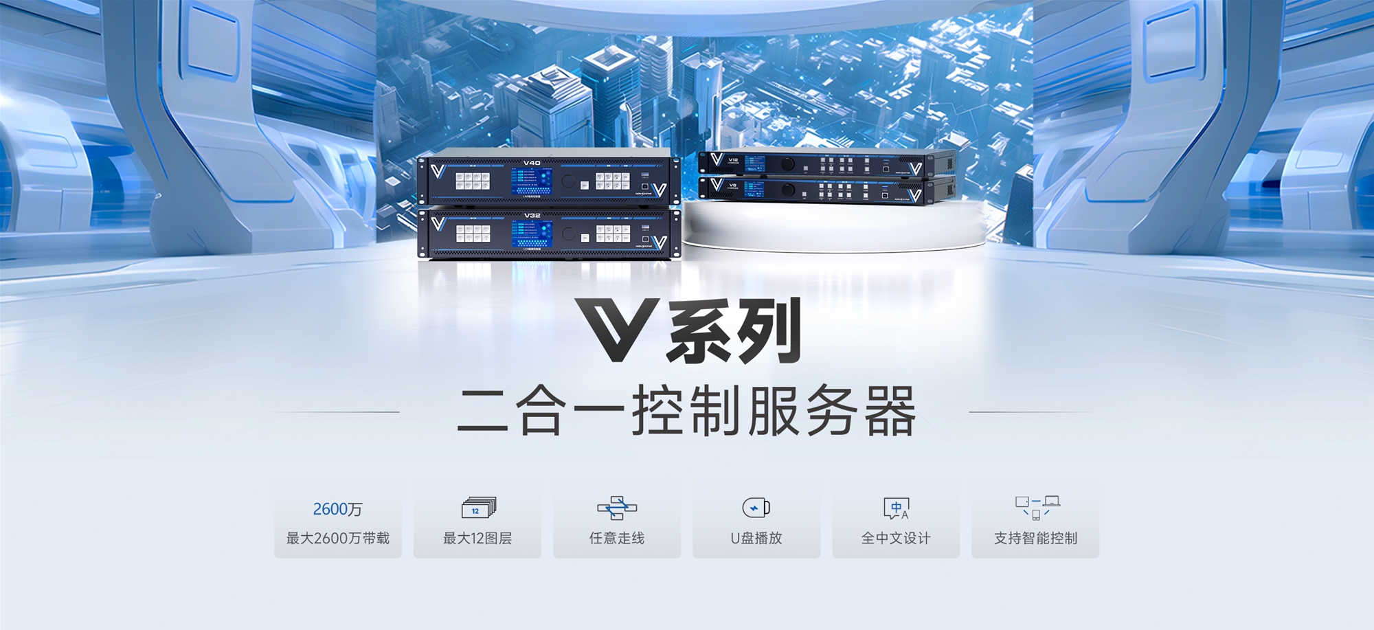 Dòng sản phẩm này được Novastar ra mắt gần đây (khoảng năm 2024), tập trung vào hiệu suất cao, hỗ trợ đa cửa sổ và chuyển cảnh chuyên nghiệp, phù hợp cho các ứng dụng như sân khấu biểu diễn, trung tâm hội nghị, quảng cáo LED và trung tâm điều hành. Các model chính bao gồm V8, V12, V24, V32 và V40.